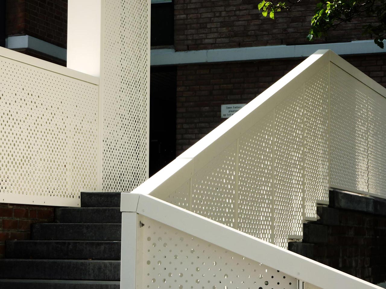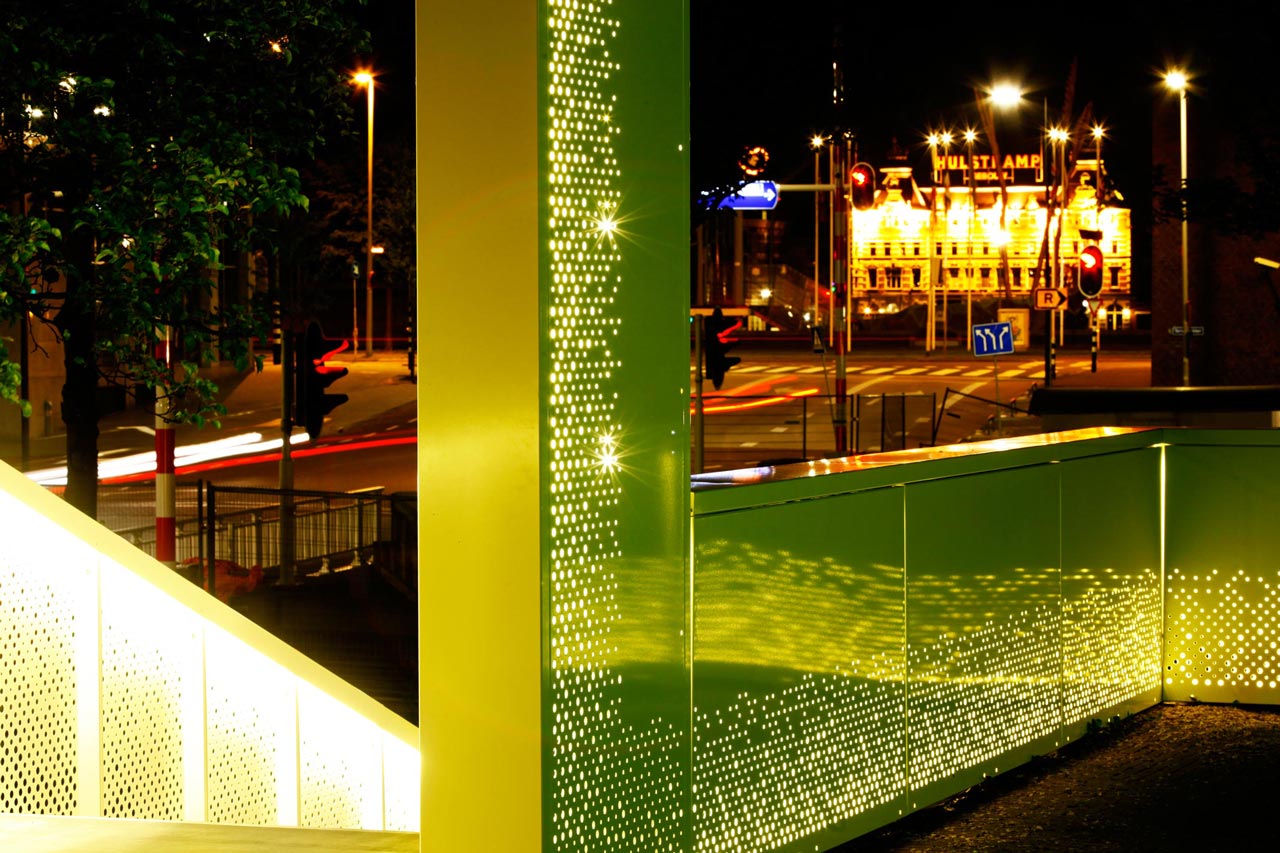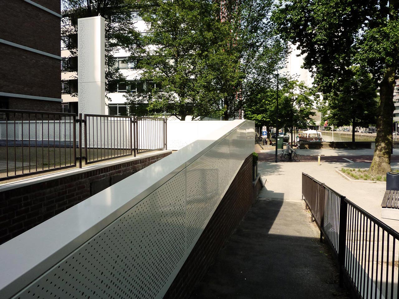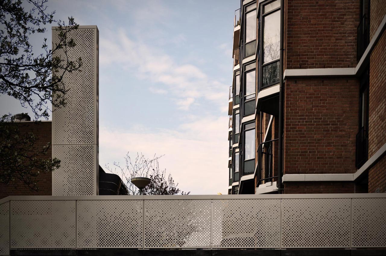 The new entrance stairs for a large housing block in the city centre of Rotterdam connects the public domain to an elevated semi private domain. We designed the new entrance with the idea of finding a balance between invitation and separation.