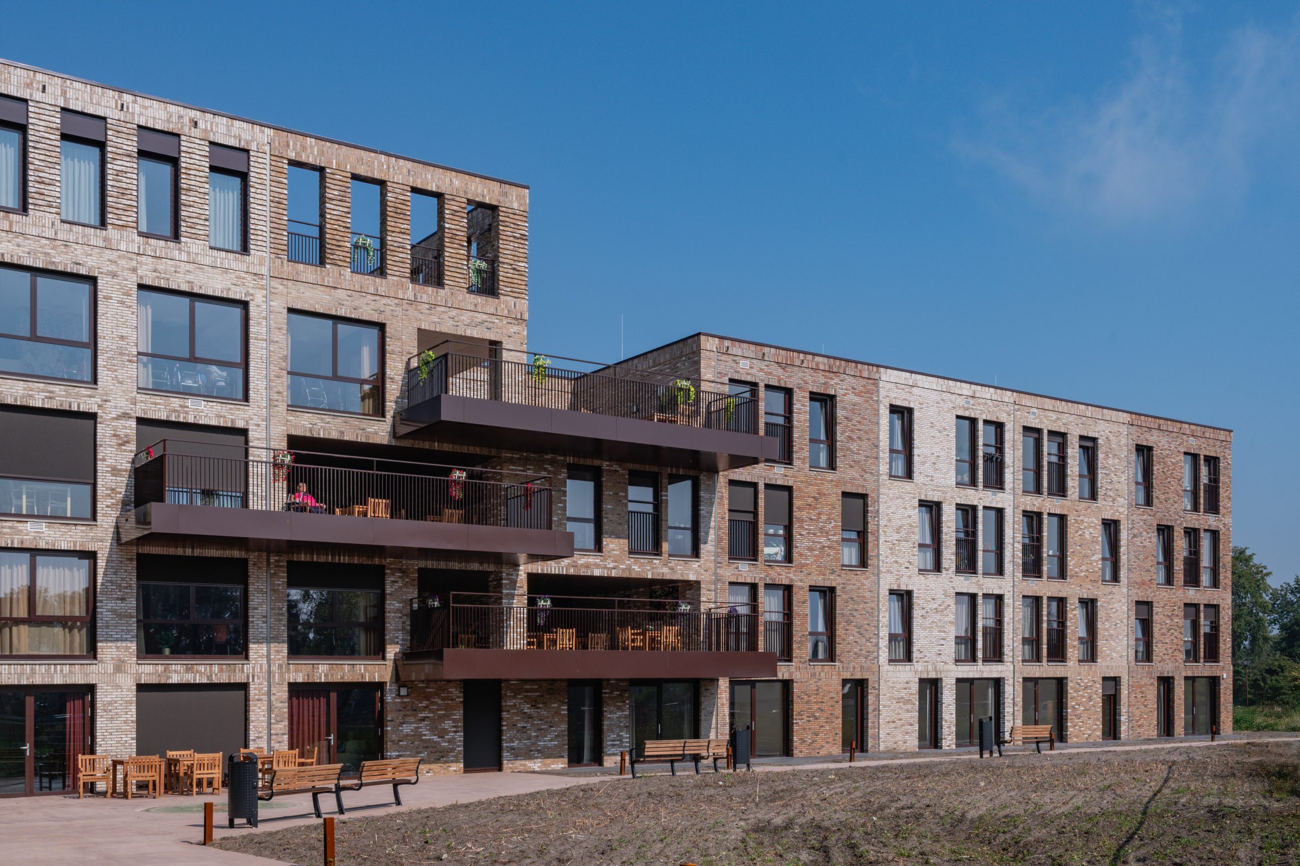 The two nursing homes buildings are large L-shaped flat volumes with a clear and consistent architecture. Facades are carefully designed on all sides, emphasizing a more urban character along the Amerikavaart and a somewhat more subdued character towards the inner courtyard.